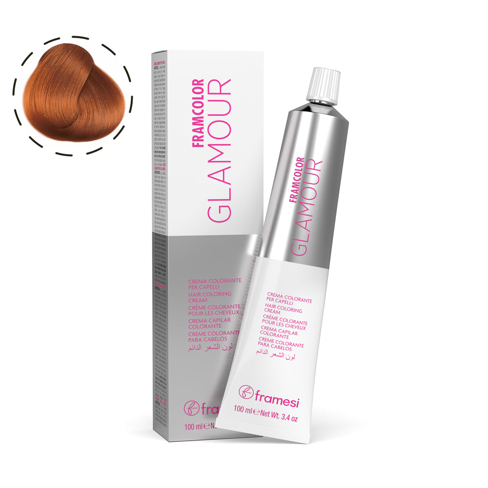 Add a touch of warmth and sophistication to your look with Framesi Glamour Italian hair color in shade 7.635. This innovative shade combines the depth of medium blonde with the radiance of gold and soft hints of pink and sand, giving your hair a rich, multi-dimensional color that complements a variety of skin tones perfectly.